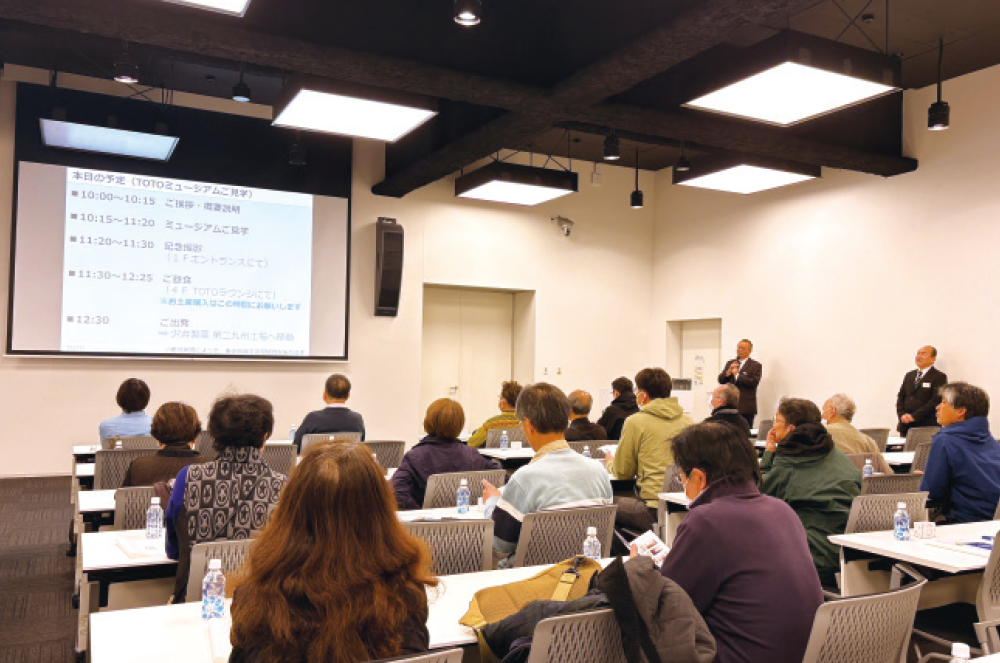 春の気持ちの良い陽ざしの中、福岡県にあるTOTOミュージアムと沢井製薬※ 第二九州工場の2ヶ所を一日で回るという当社初の企業訪問ツアーが開催されました。参加者は全国各地から集まった22名のファンド仲間です。異業種でありながら誇りと使命感を持って製品を作り続ける2社の志は、深いところで共鳴し合っていました。