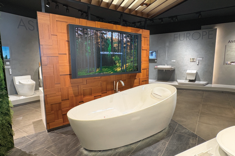 まず向かったのは、TOTO株式会社本社敷地内に開設された“TOTOミュージアム”。縄文時代から現代に至るまで、私たち生活者の水回りの歴史を学ぶことのできる非常に面白い施設です。見所は何といっても、部屋いっぱいに展示されたとにかくたくさんの便器をはじめとする衛生陶器。世界各地からTOTO製品を愛する見学者が数多く訪れ、「私が使っているトイレ(バスタブ)はこれ!」といった楽しそうな会話が聞こえてきます。驚いたのはその製品の美しさと、精緻に設計された内部構造の複雑さです。最高級の便器は今でも泥から人の手で形をつくり、釉薬を吹き付けて窯で丹念に焼き上げ、芸術作品のような美観に仕上げますが、見えない裏側では世界の水不足問題に向き合う同社の奮闘があります。TOTOの創業の心は100年経っても色褪せることなく、日本の衛生文化を世界に向けて発信し続けていました。