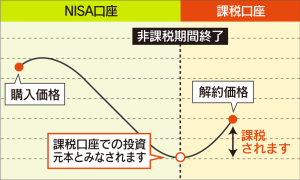 ①非課税期間終了後、課税口座へ自動移管(お客さまご自身での手続き不要)